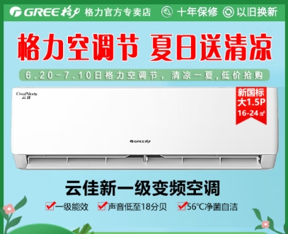 格力空調(diào)云佳新一級(jí) 1.5匹變頻冷暖掛機(jī) 高溫自清潔節(jié)能省電 18分貝 獨(dú)立除濕 KFR-35GW/皓雪白防直吹 大1.5匹 一級(jí)能效