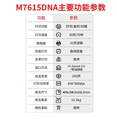 聯(lián)想(Lenovo)A4黑白激光雙面輸稿器打印機(jī)復(fù)印掃描多功能一體機(jī) M7615DNA自動(dòng)雙面輸稿器有線網(wǎng)絡(luò)